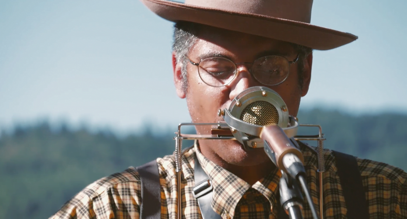 American songster Dom Flemons takes to a “treehouse” for his feisty rendition of “Going Down the Road Feeling Bad.” Brian Farrow accompanies Flemons on fiddle, and the two really lay into the old traditional that has been done up by everyone from Woody Guthrie to Elizabeth Cotten to Bill Monroe to the Grateful Dead. Flemons and Farrow don’t do all of the tune’s verses, leaving room for them to swap runs on the harmonica and fiddle.