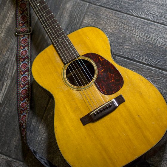 I signed a publishing deal two years ago and got a decent chunk of advance money so I decided to seek out my ultimate “tool of the trade.” I went to Carter Vintage Guitars and played a half dozen old Gibsons. Nice. I played a couple newer Martins. Fine. But this 0018 kept whispering sweet nothings. This one had stories to tell. I was sweating because it cost more than my car. It was on consignment so I made an offer. They accepted and she was mine all mine. I’m still smitten. The songs they keepa coming…