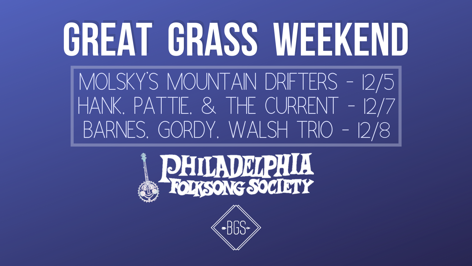 BGS Presents Great Grass Weekend @ Philadelphia Folksong Society 12/5 – 12/8