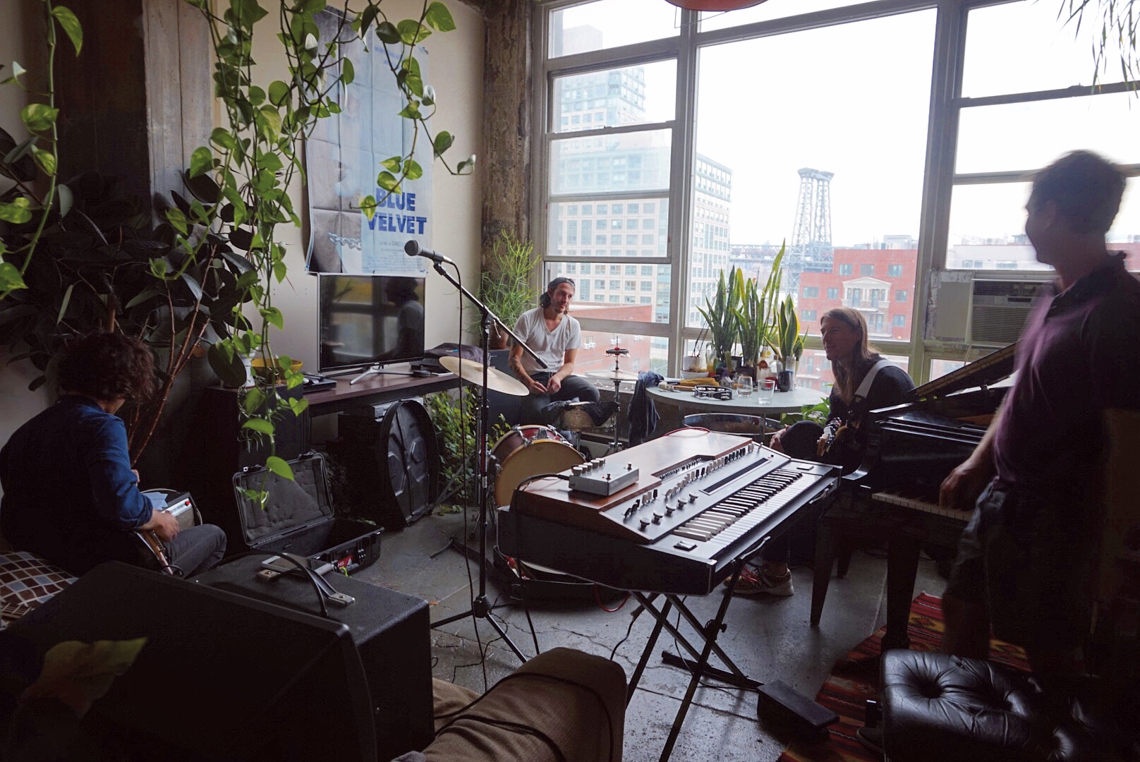 I'm always writing songs in my living room. I live in a pretty classic artist's loft building so no one ever complains about the noise, and it looks out on a beautiful view of the bridge and city that's pretty inspiring. It also doubles as a rehearsal space with just a few slight furniture rearrangements which is super fun and convenient. We'll even host concerts here from time to time!
