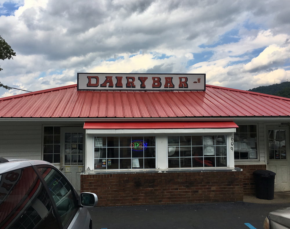 The Dairy Bar: Get a hot dog basket and a lemonade. Killer burgers, too. When my mom was a kid, she’d get the lime float. This is a real old-school drive-in, and they’ll bring the food right out to you. You can sit in your car or get out and sit on the deck, which gives you a bird’s eye view of Felts Park. So, if you’re there the second weekend of August, you can look down on the mayhem of the Fiddlers’ Convention while you chew.