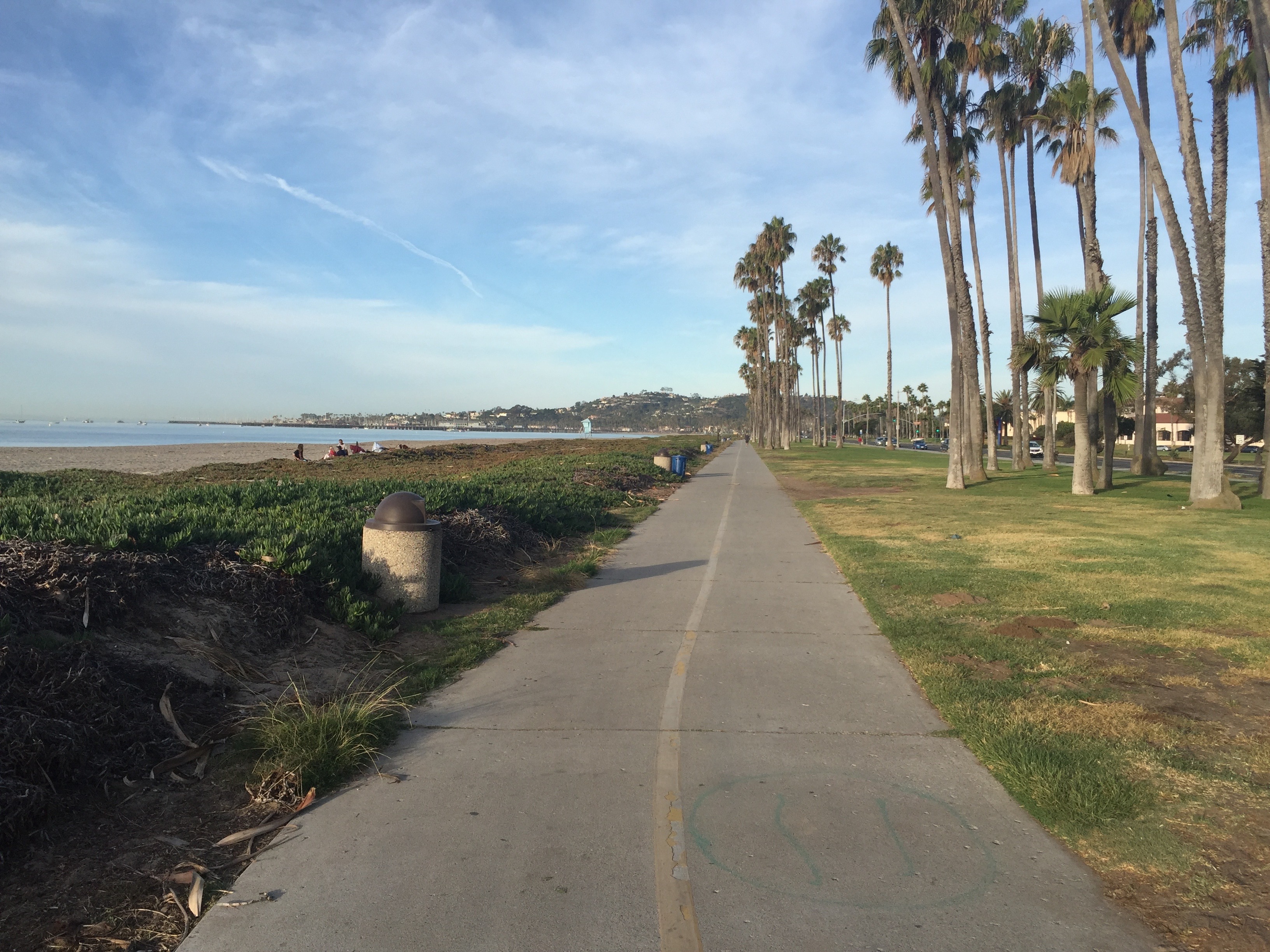 This is the East Beach bike trail. One of my favorite runs in town is to park at the bird refuge and go along the bike trails to the end of Shoreline Park. The view is great, the sea air is cooling, and there’s almost no stopping for street traffic. Perfect running route.