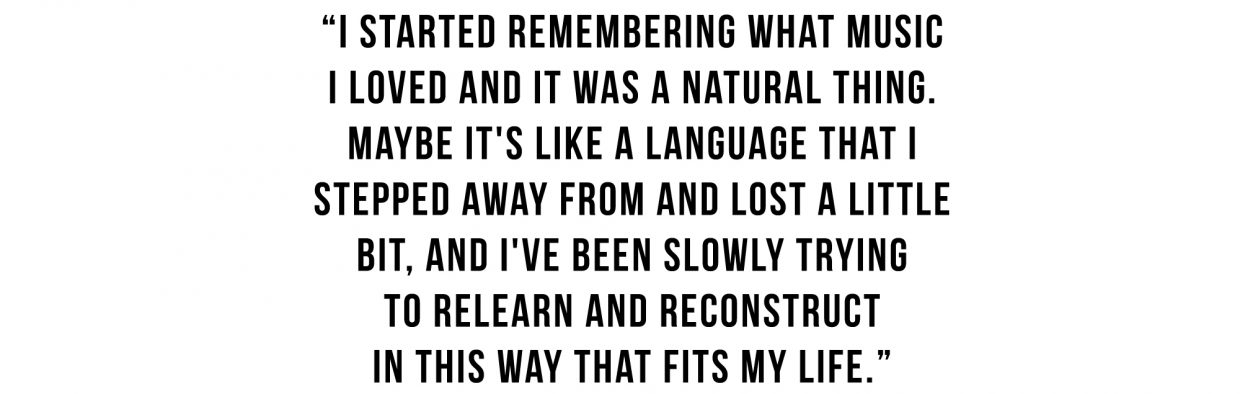 I think as I’ve gotten older — and maybe it’s something that you do, you know, reflecting on your childhood and what you cut your teeth on — it just kinda happened. I started remembering what music I loved and it was a natural thing. Maybe it’s like a language that I stepped away from and lost a little bit, and I’ve been slowly trying to relearn and reconstruct in this way that fits my life.