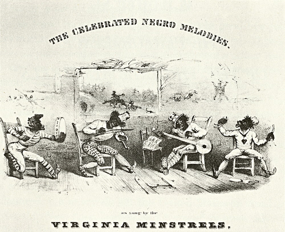 Detail from cover of The Celebrated Negro Melodies, as Sung by the Virginia Minstrels, arranged by Th. Comer, Boston, 1843. Scanned from Dan Emmett and the Rise of Early Negro Minstrelsy by Hans Nathan.