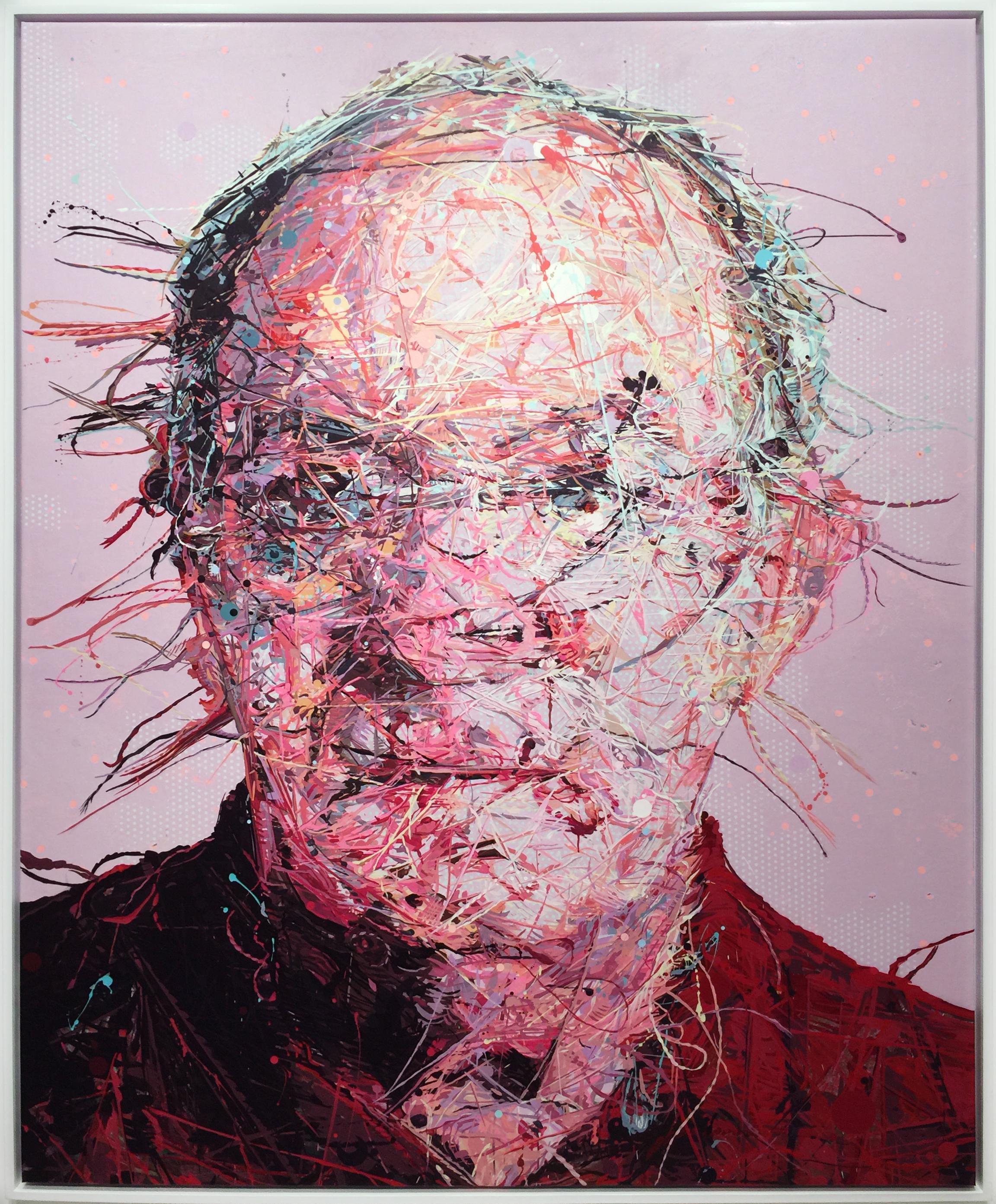 I have never made abstract work in the past, but have recently started to make a series of abstract portraits based on the reverse side of my embroideries. When I turned my embroidery over a few years ago and noticed this other side, it was an exciting discovery that allowed me to introduce paint back into my work. I now do the embroidered portraits and have a separate series of “Verso” works, which are small gouache and large-format acrylic paintings based on this reverse image. This back side is messy, tangled, knotted, and has lots of loose ends. It is my hope that, by focusing on this reverse side and using it to inspire my paintings, that it would initiate a conversation about the divergence between our presented and private selves.
