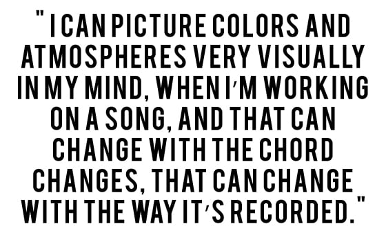 DS: It is a visual thing for me. That’s funny: No one’s prefaced the question that way but, yeah, it’s very visual. And I don’t mean images so much as colors. I can picture colors and atmospheres very visually in my mind, when I’m working on a song, and that can change with the chord changes, that can change with the way it’s recorded. The songwriting is more impressionistic, I guess. I don’t always do this, but I rarely go into writing a song with an idea of what I want the song to be about. It’s more like I kind of accidentally start writing a song and then mumble jumble a bunch of words that don’t really make sense, and then piece together bits of the song after that, and then think about what it means to be halfway through writing it or something. It usually takes me finishing a song before I really understand what it is or what it means.