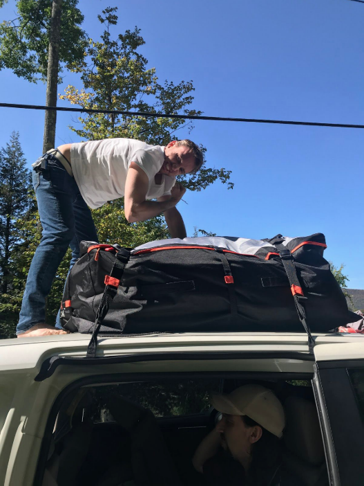 A ROOF RACK: It saves so much space and is great for storing items you don’t need or use every day. However, it’s still easily accessible anytime. We keep sleeping bags, winter coats, air mattresses, and extra merch up there.