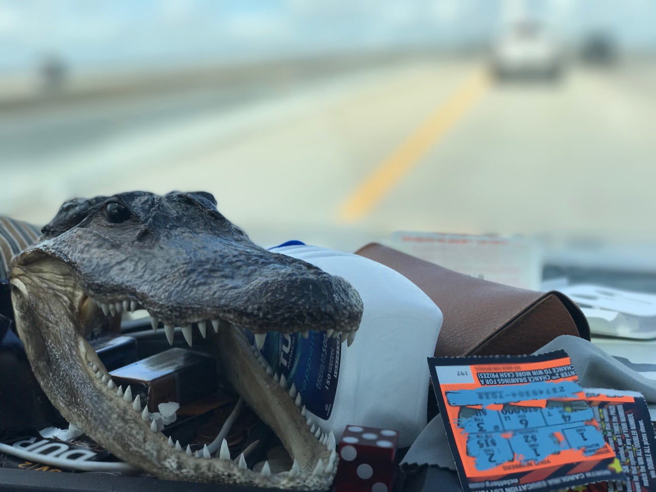 Junior Junior II: He’s an alligator head. He pretty much just chills with us. Sometimes he hangs at the merch table, sometimes he hangs on the dash. We picked him up in Florida, after some dickhead stole his father (Junior Junior Sr) from us, at a show in San Luis Obispo, California.