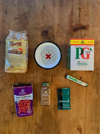 I also travel with PG Tips English breakfast tea. It’s my favorite. The water has to be boiling and I steep it for four minutes. These little milk packs are great and I always bring a bunch of ’em. I can’t have my tea until AFTER I’ve had my oats. If I have my tea first I get anxiety. Caffeine on an empty stomach makes me crazy.