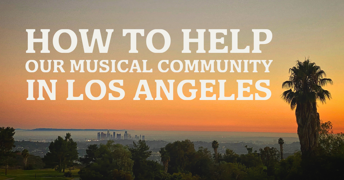 Local on-the-ground organizers have compiled THIS LIST of fundraising pages, resources, and urgent needs for musicians, instrumentalists, producers, and artists in the Los Angeles area. As of this writing, it has raised more than $6,000,000 across its various fundraisers and donation pages. Hundreds of families and individuals have been affected and are listed in the spreadsheet. If you’re looking for a way to directly support, this is a great collection of options.