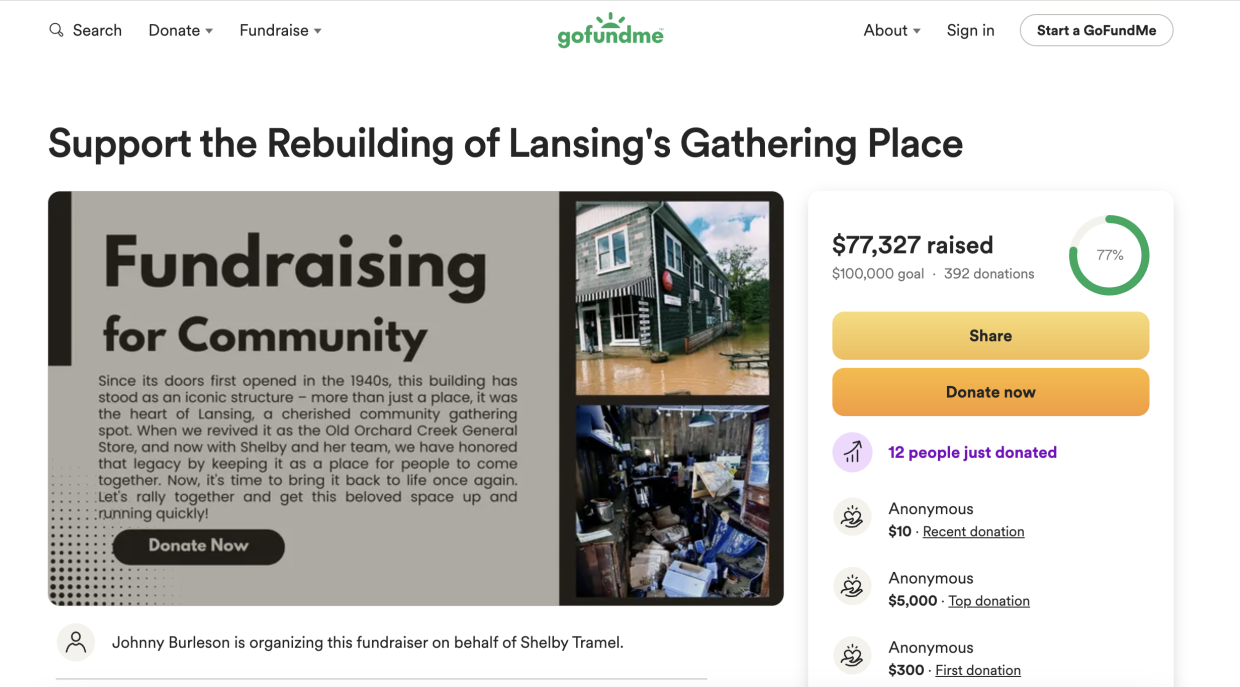 In addition, Lansing and the Ashe County area surrounding it are criss-crossed with mountain creeks and streams, many of which burst their banks and washed out bridges, driveways, and crossings that were critical for folks’ daily lives and safety. As a result, the citizens are banding together to rebuild this critical infrastructure for their neighbors. Give to help rebuild their roads, bridges, and driveways here.