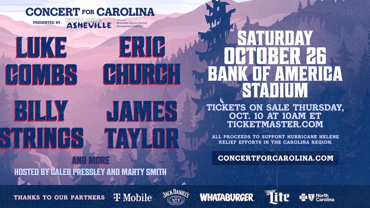 Announced yesterday, October 7, with tickets going on sale Thursday, October 10, Charlotte, NC’s Bank of America Stadium will be taken over on October 26 by Luke Combs, Eric Church, Billy Strings, James Taylor, Keith Urban, Sheryl Crow, and more for a star-studded benefit show. Proceeds will support relief efforts in the Carolinas. The event will be hosted by ESPN’s Marty Smith and Barstool Sports’ Caleb Pressley and will feature additional artists still to be announced. It’s sure to be a sell out – and for good reason!