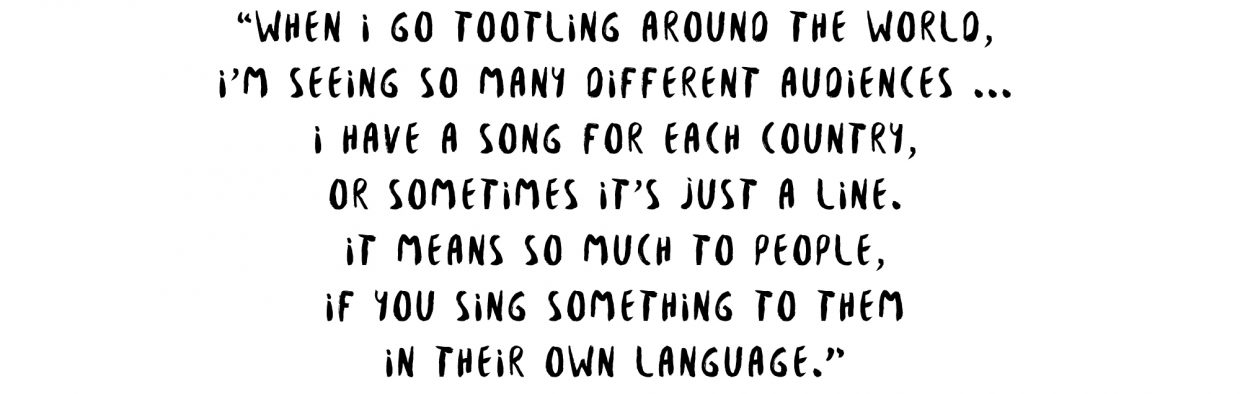 That idea is ingrained in her vast catalog, although it grows more poignant now that her career appears to be winding down. “When I go tootling around the world, I’m seeing so many different audiences,” Baez says. “I’ve played a lot of festivals in Germany and adopted France as a second country. I do five songs in French for them. I have a song for each country, or sometimes it’s just a line. It means so much to people, if you sing something to them in their own language. It’s hard work, but it’s a way to thank people for showing up.”