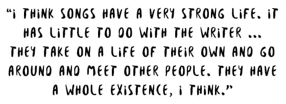The songs Collins and Hest have written add to the large oeuvre of her work, which largely involves singing words and melodies someone else has penned. Through it all, she’s made each song her own. She says, “I think songs have a very strong life. It has little to do with the writer. The writer writes them and then maybe sings them, maybe not, but then they take on a life of their own and go around and meet other people. They have a whole existence, I think. You hear a song that you like, and you’ve heard 15 people recording it or singing it, then you know it’s always different. It always sounds like the singer who’s singing it. It will stand out in a different way for each performer.”