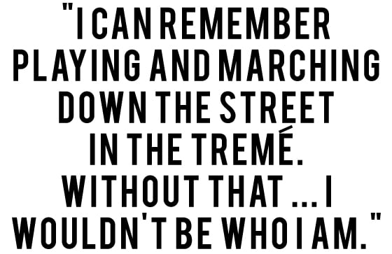 I can remember playing and marching down the street in the Tremé. Without that, and the people around me who taught me or provided access to instruments, I wouldn’t be who I am. That’s why I feel the responsibility to carry on the traditions that raised me. I don’t want to wait until late in my career to give back. I want to do it while things are growing for me. I felt an unspoken responsibility to give back.