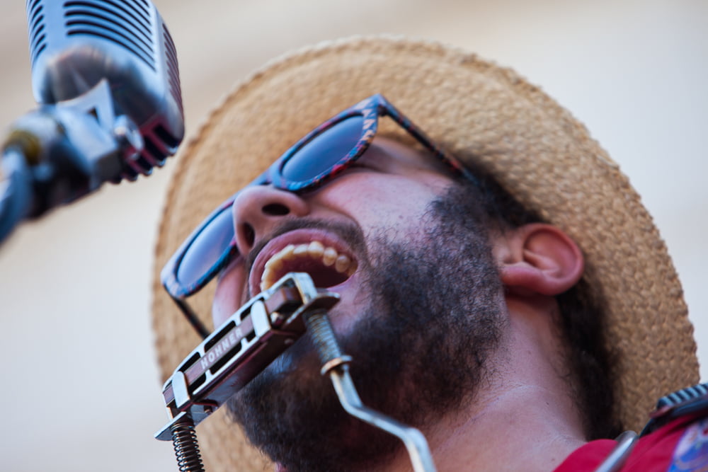 Before they opened the gates to the main theater, the Situation got situated with four sets on a plaza stage as visitors lolled around, queued up at the hipster instant haiku booth (manual typewriters), and played cornhole in the shade. The L.A.-based Wild Reeds got things started with a mix of banjo and Telecaster. Three women carried the floaty harmonies with a two-dude rhythm section lending propulsion. I was taken by the hand pump organ surging behind their sound. Maybe those are the wild reeds they’re talking about.