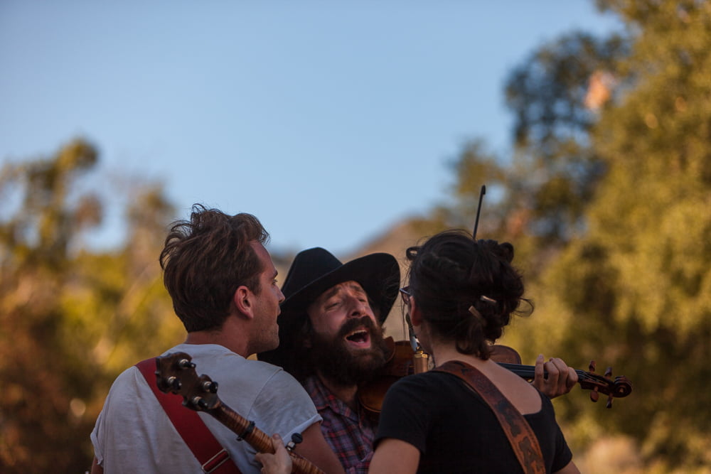 With that, the main amphitheater opened up and its wild architecture was revealed. It has flights of seats on the wings that float above the rocky hillside. There’s no lawn. But folks were mellow about seating so we could wander a bit and sit and visit as the music got going. And the music grew compelling very fast as Della Mae took the first set. They’ve been part of just about every BGS event I’ve ever seen, and rightly so, since they’re injecting so much visionary, feminine badassery into the old tradition. The material from the new self-titled album drifts a ways from bluegrass, and the quintet opened the set with the opening of the record, the fist-in-the-air feel of “Boston Town” and the soul sway of “Rude Awakening.” But, before long, Kimber Ludiker was leading a pulsing, knockout fiddle tune that led to fiery solos from mandolinist Jenni Lyn Gardner and guitarist Courtney Hartman. Lead vocalist Celia Woodsmith really uncorked on the Rolling Stones cover, “No Expectations,” which suited the California air. She also summed up the whole deal with the proclamation that “We’re in a pretty good spot in the world right now.”