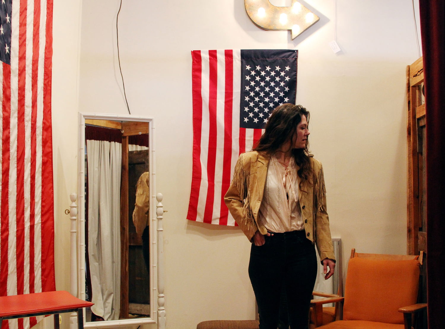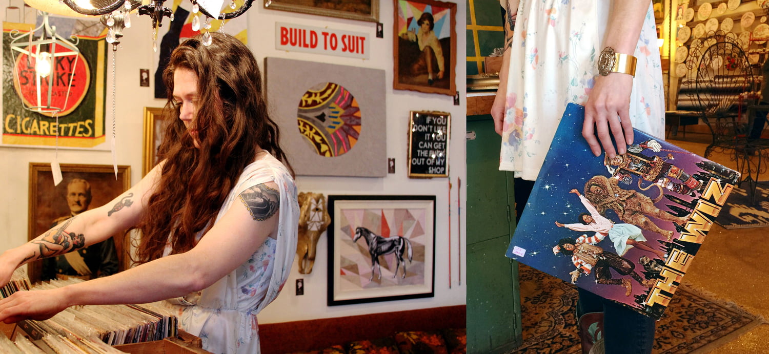 I was stoked to meet up Lilly Hiatt earlier this month. I felt our mutual love for unruly hair, Tom Petty, and second-hand shops promised an exciting, off-the-wall morning … in addition to her impeccable musical taste and skills, of course. Lilly is primarily a denim, tee, and leather gal. She keeps an eye out for something fun, functional, and good for the stage while shopping. After learning that Tom Petty is her style icon, I immediately thought of polka dots and top hats, and I couldn’t wait to hit the clothing racks of Old Made Good with her.