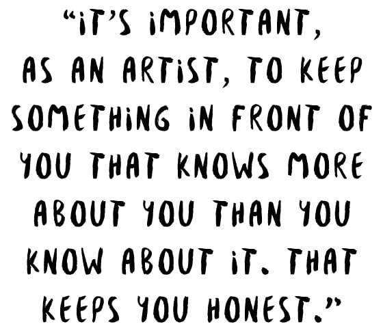 Setting that twang in the Mojave Desert culminated from two earlier projects. First came film: Billy Bob Thornton approached Stuart about scoring All the Pretty Horses (2000), which opened him up to music’s visual properties in an entirely new way. “I learned more about making cinematic songs come to life when we were doing that film,” he says. “I actually called upon Kristen Wilkinson, who was the arranger — we scored that film together — so anytime you hear an orchestral part in [Way Out West], that’s Kris Wilkinson.” Then came his 2006 album Badlands: Ballads of the Lakota. A particular field recording he made for that project stood out and provided the entry point for his new album. “I thought about this prayer that Everett Helper sang and played on his drums. Between that and a sitar and just combining all those sounds, all of a sudden [Way Out West] became a different record.”