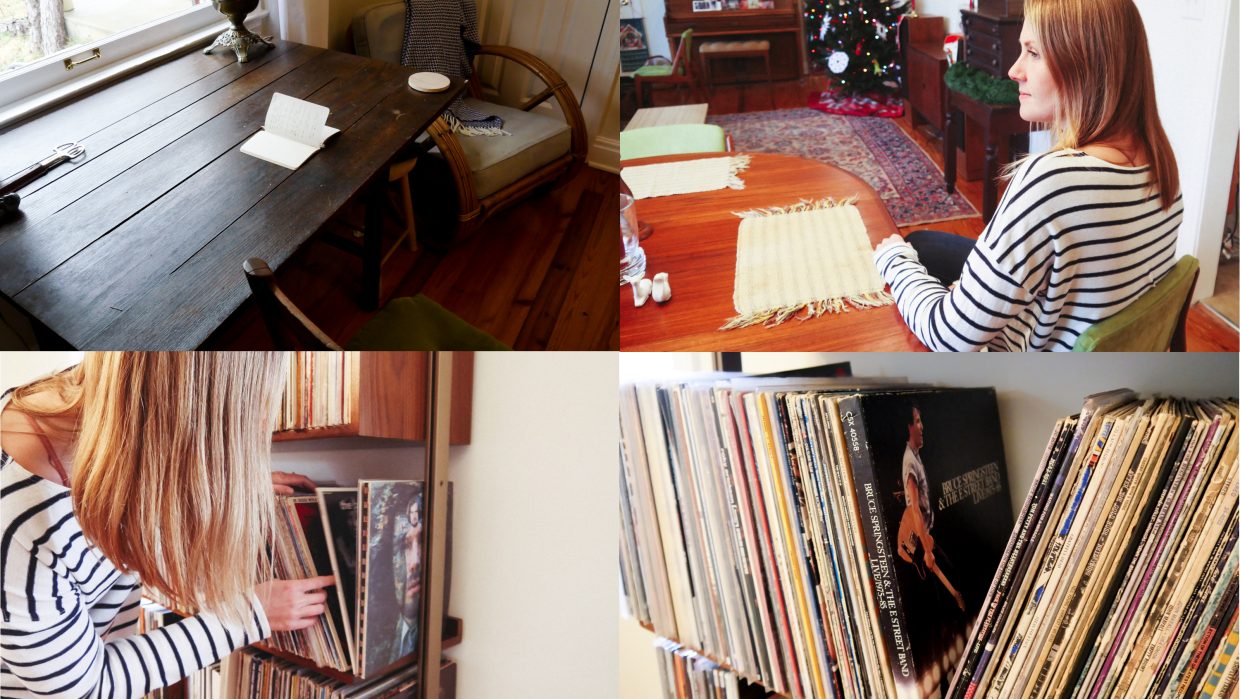As she prepared the tea, I prepped my camera and began to admire the details of the living and dining rooms: wood floors, white walls, vaulted ceilings, eclectic but minimal decor. Other than a few classic Christmas decorations, the space was free of clutter and knick knacks (something that is far from my reality), with the exception of one toy dinosaur on the liquor cabinet.