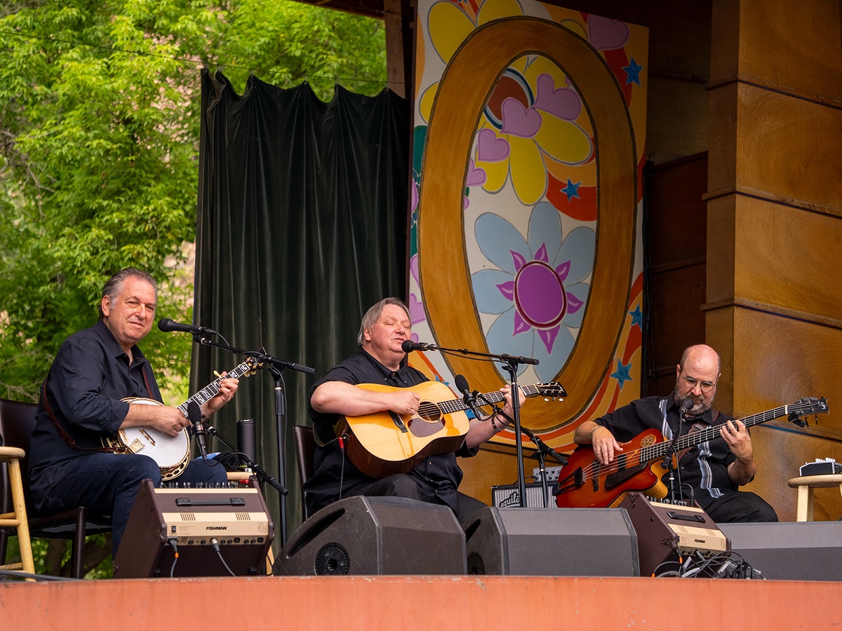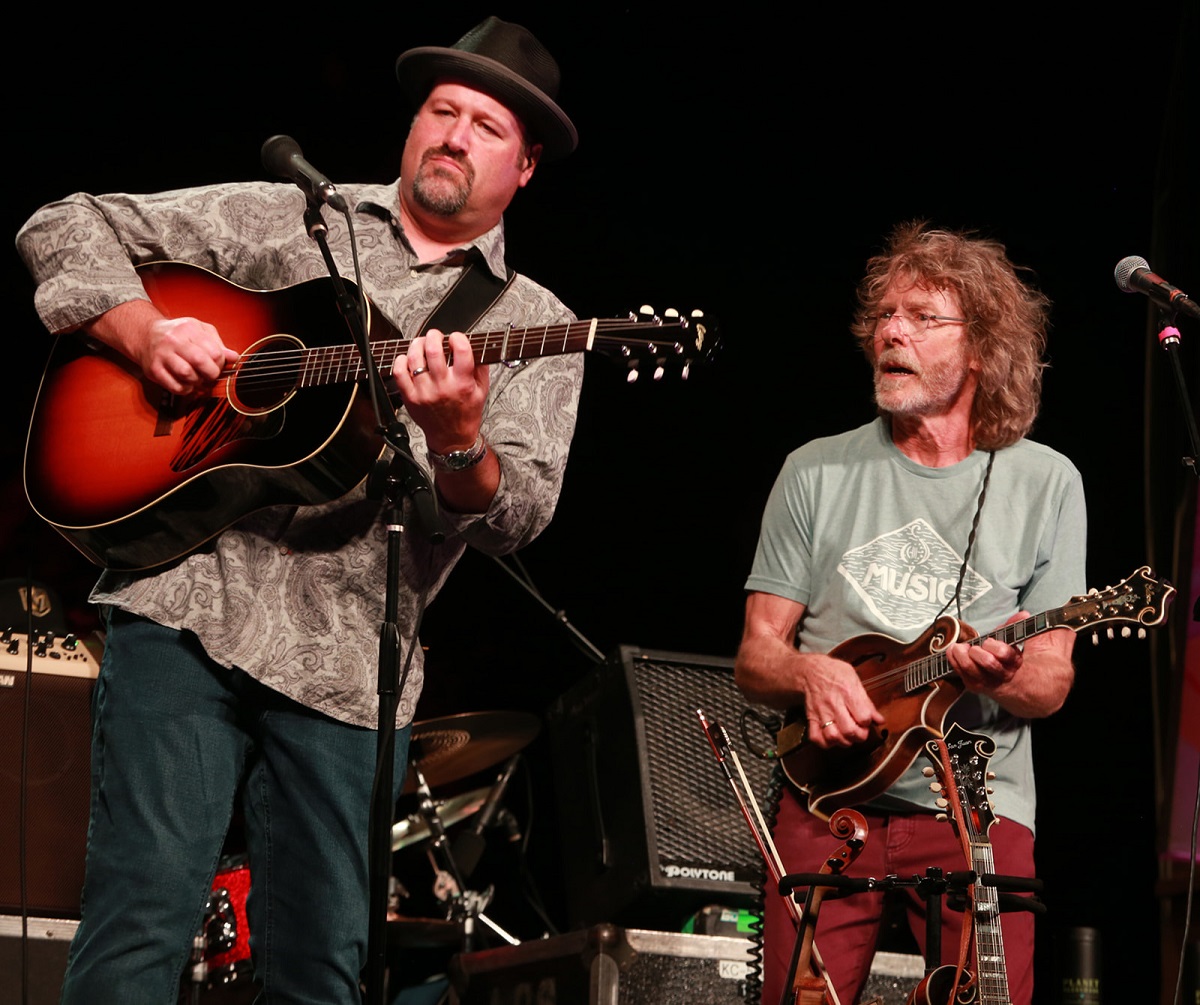 Peter Rowan (right) with Chris Henry on mandolin and Max Wareham on banjo