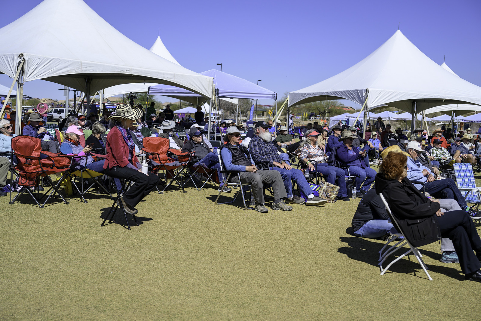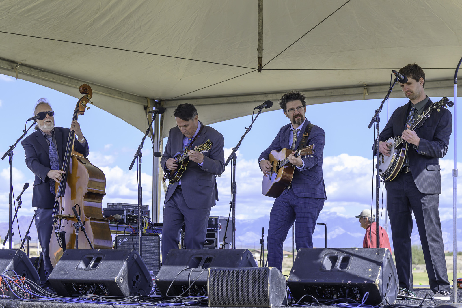 Perhaps this was not a high-powered festival, but it stayed true to its ambitions by creating a friendly atmosphere and a comfortable way to hear and see some excellent performances. The sound system was first class, there was plenty of room to sit, stretch out, or to get as close to the stage as anyone could want. Festival organizers made sure there was enough shade for listeners to cope with the bright desert sun and the artists performed with the beautiful Rincon Mountains and a snow-capped Mt. Lemmon in the background. Several hundred people arrayed themselves around the stage. As is often the case at bluegrass festivals, artists were accessible and friendly. And there were plenty of well-behaved bluegrass dogs enjoying the music.