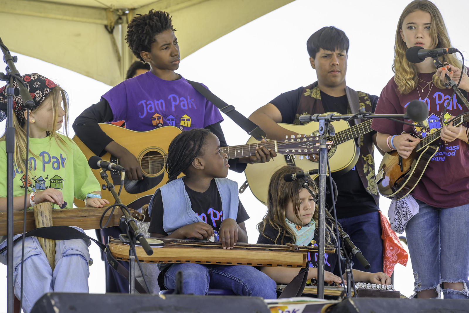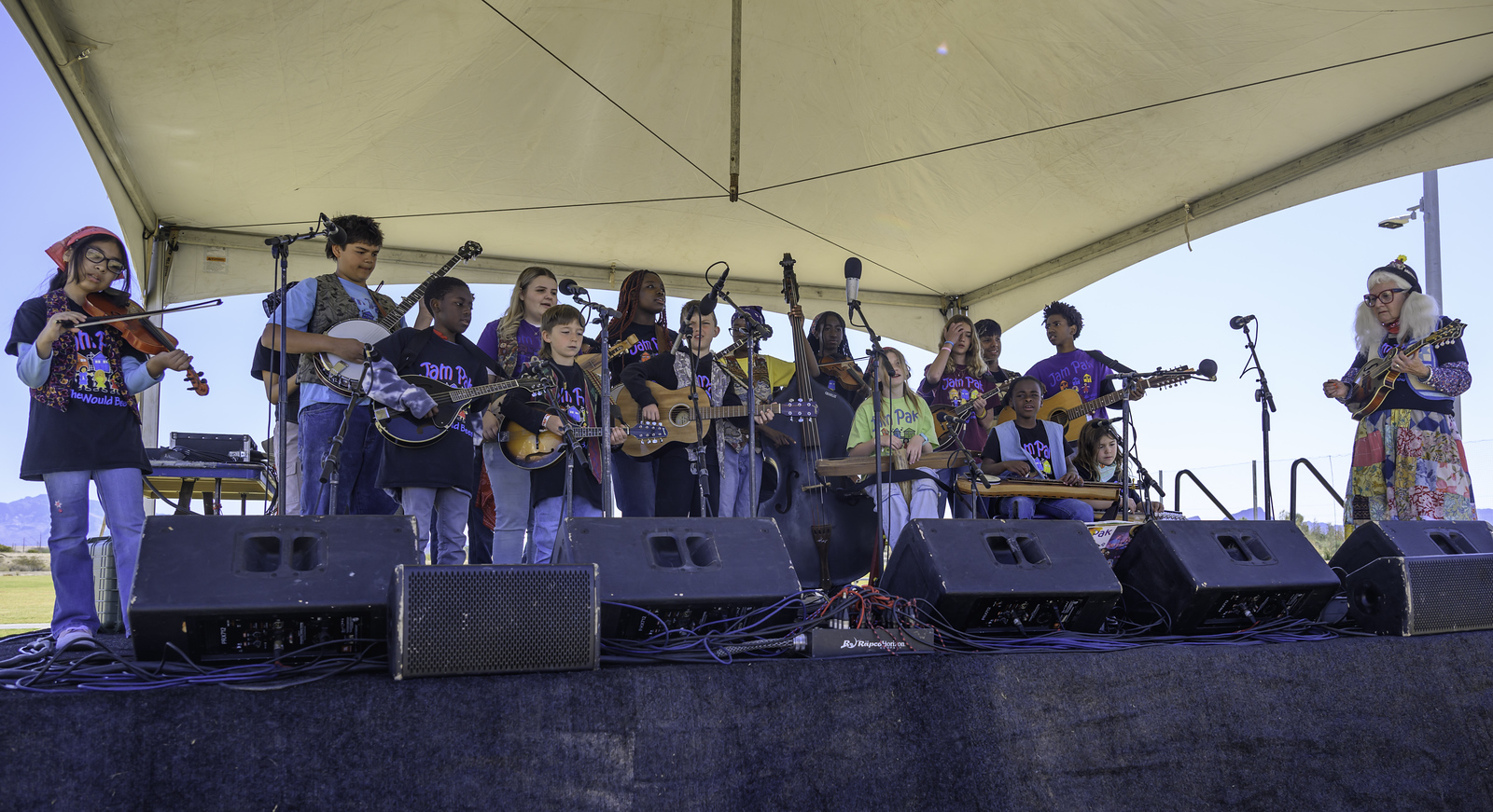 JamPak Blues ‘N’ Grass Neighborhood Band kicked off Sunday morning’s program. Based in Chandler, Arizona, the venerable Mrs. Anni Beach leads this long-running community youth band. JamPak musicians start young and some have played long enough to do some very respectable picking. Musical values are strong, and JamPak has spun off several generations of performers, including another band featured on Saturday, Cisco & the Racecars.