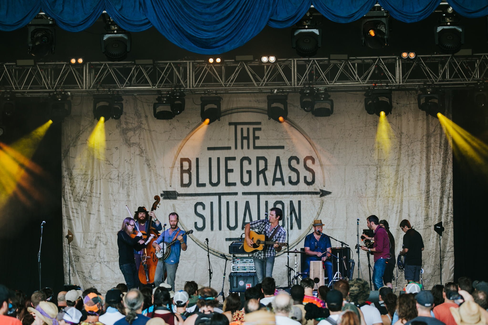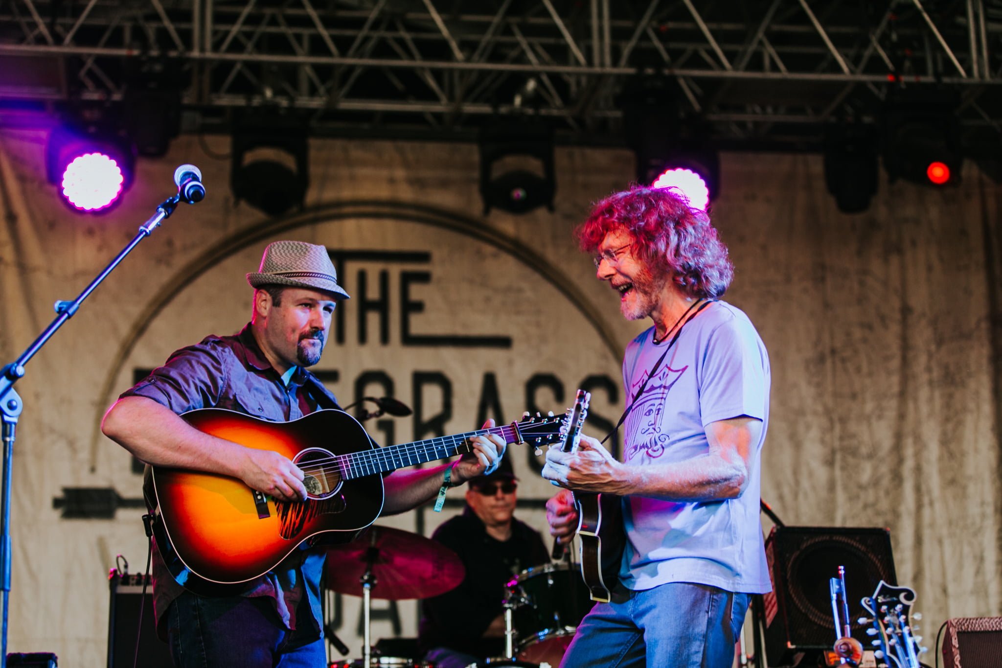 As the day’s big Superjam grew nearer, the crowd forming outside That Tent grew from modest to massive, stretching back to the vendors and filled with onlookers waiting for a glimpse of Ed Helms and his all-star on-stage compadres. He started off the collaborative headlining set with a hand-clapping rendition of bluegrass classic “I’ve Endured,” sharing the mic with Sean and Sara Watkins. The three of them were soon joined by Scott Vestal and Sam Bush as Sara led into “Here I Go Down that Long Road Again.”
