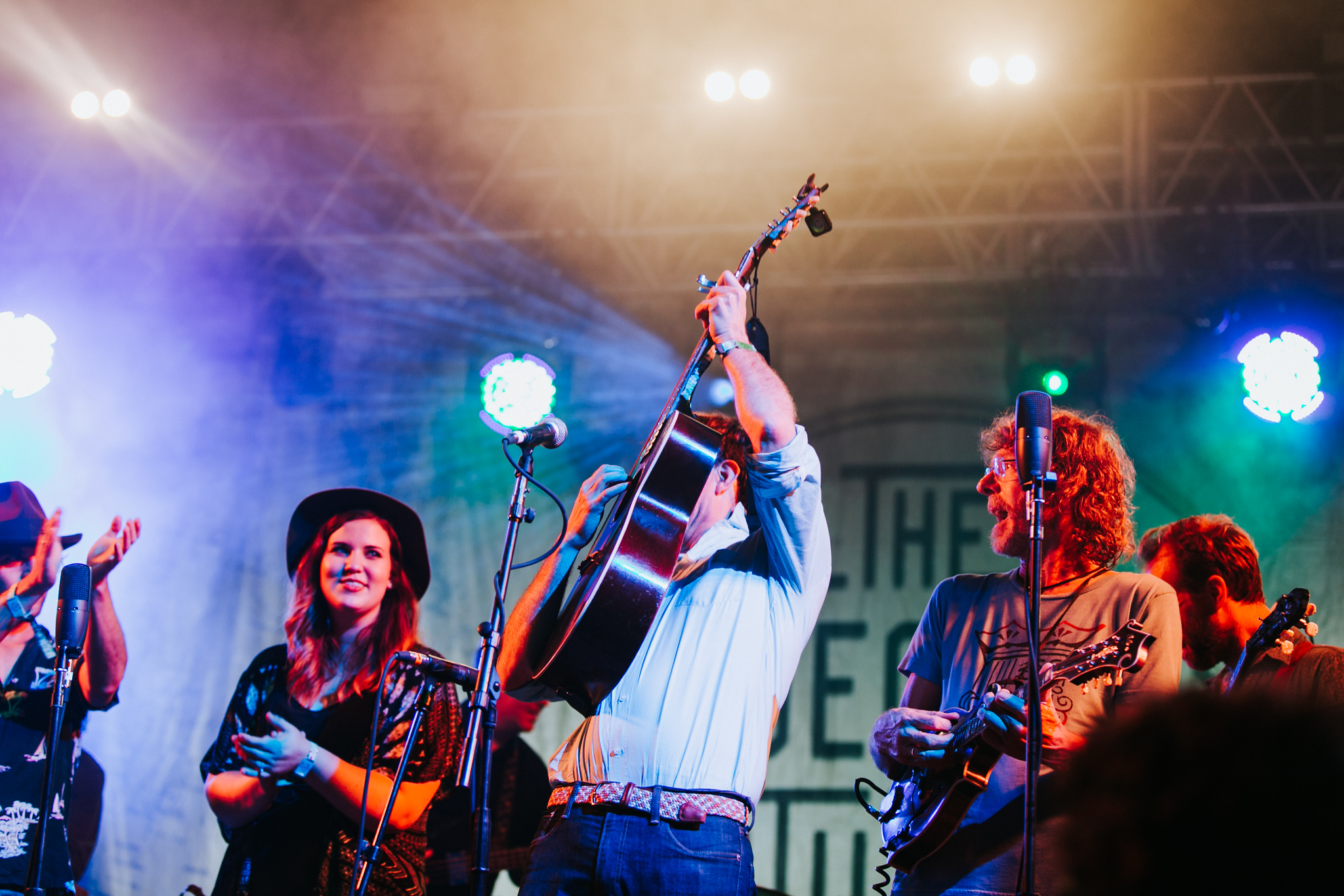 Womack returned for two more songs with the Watkins Family Hour, “Little Lies” and “Let ‘Em In,” before Steep Canyon Rangers came out to steal the stage for Merle Haggard’s classic “I Think I’ll Just Stay Here and Drink.” Once Helms returned to the stage for the last few songs, he called Amy Reitnouer (our fearless leader here at BGS and the mastermind behind the festivities) for a moving performance on Neil Young’s “Long May You Run” with the whole gang back out on stage.