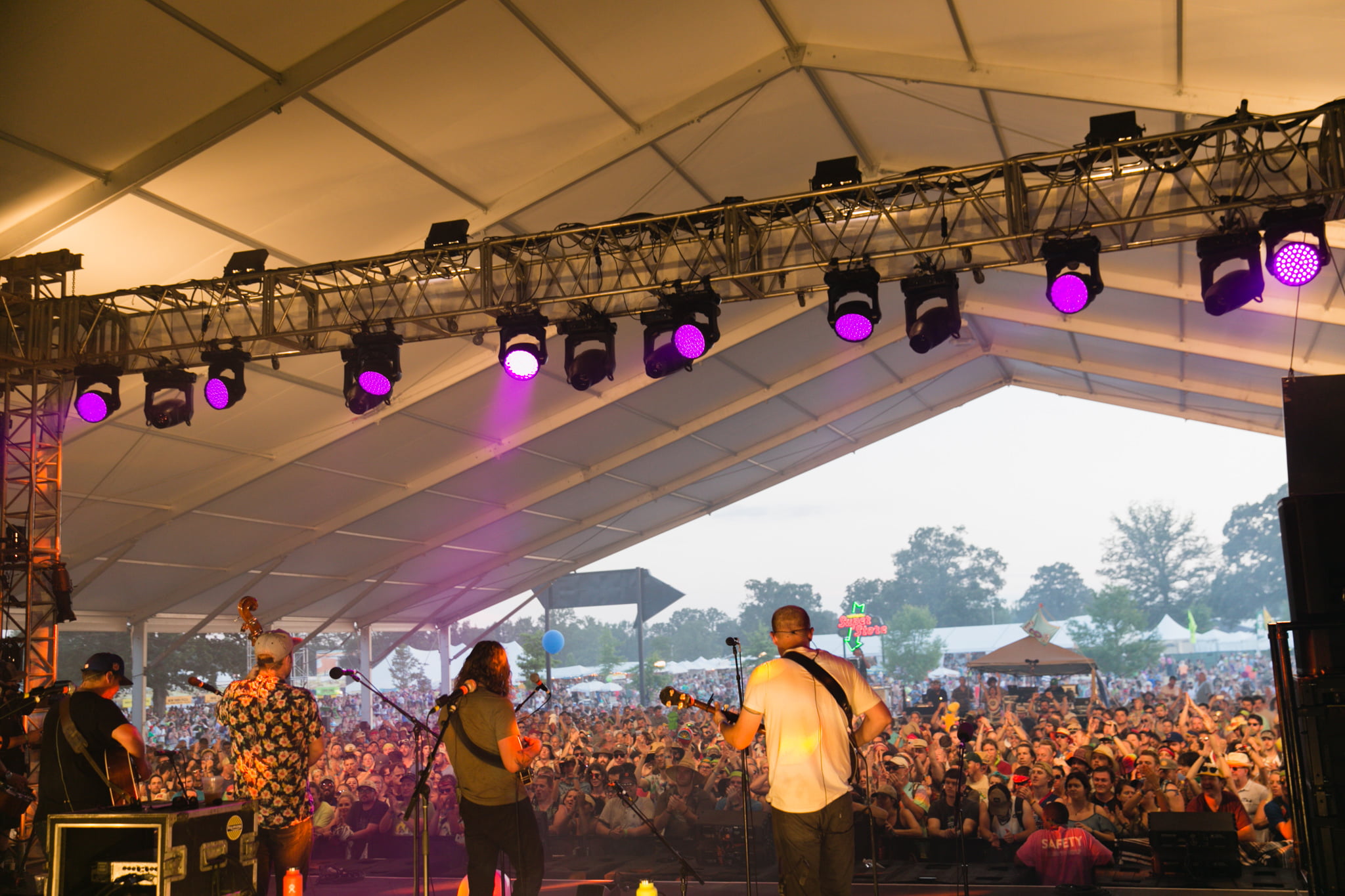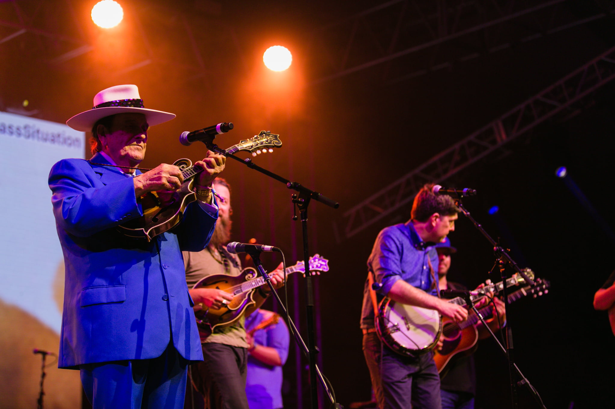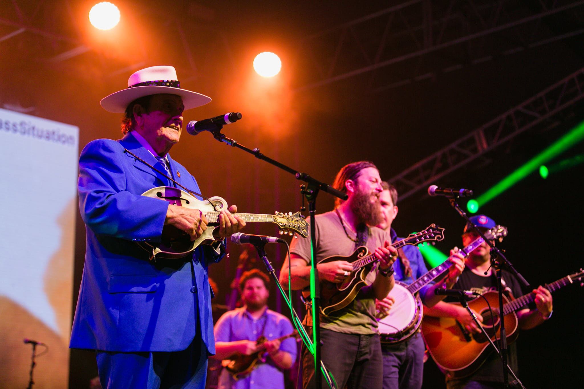 Greensky returned to the stage once again to cover the Boss, rocking it out on “Atlantic City.” Ed called the whole cast back to the stage, Bobby in his bright blue suit and iconic hat, among them. From somewhere in the crowd, someone shouted “Rocky Top!” Others agreed. They knew what was coming. Ed kicked off the Tennessee state song on banjo and Bobby sang the iconic lyrics that he and his brother Sonny first made famous. Not a single person in That Tent or overflowing out of it did not sing along.