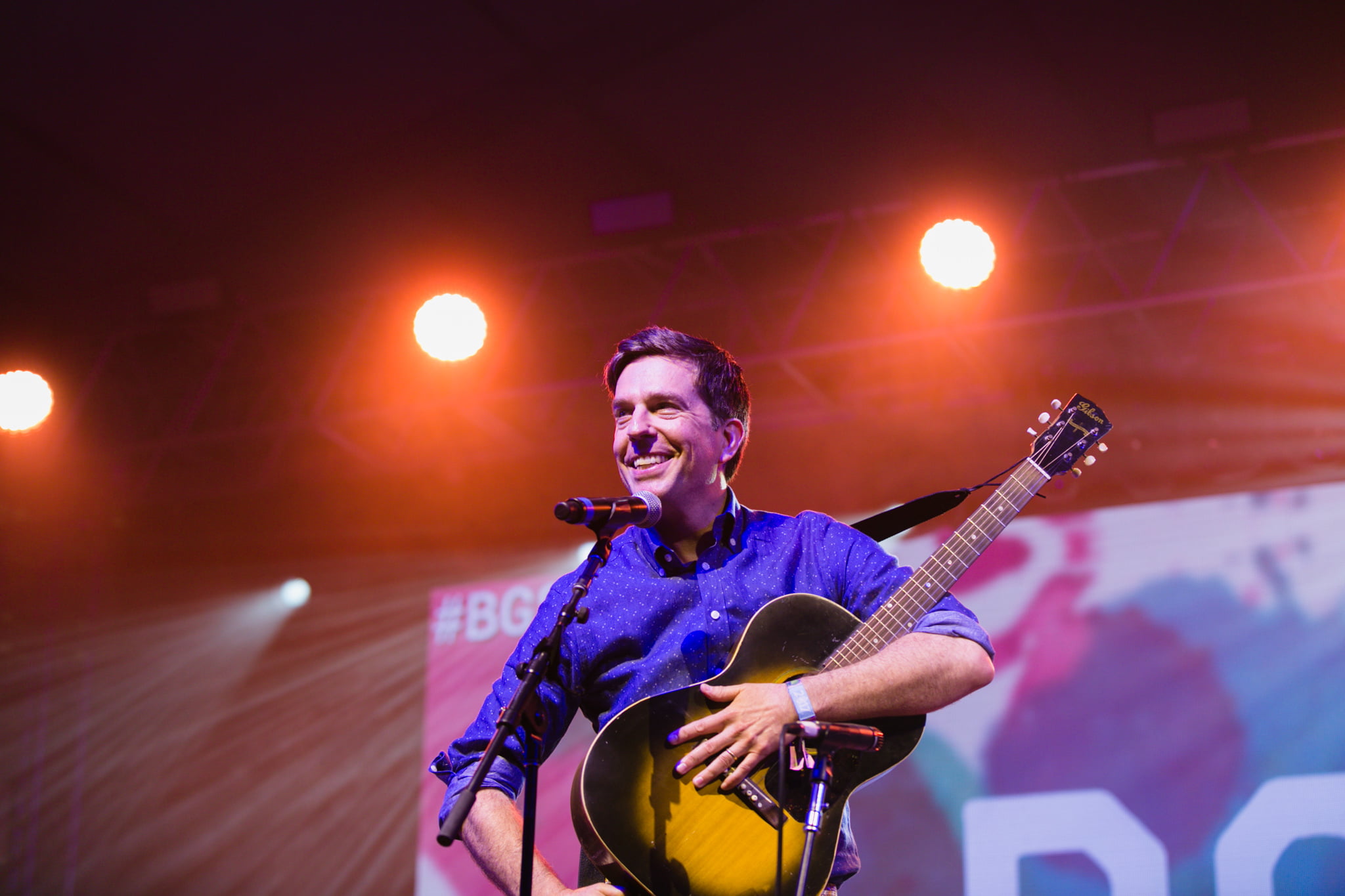 For the grand finale, Ed introduced our closing number. Waving U.S. flags on stage, the whole group belted and swayed to the unforgettable, patriotic lyrics of “God Bless the USA.” The climax of the song was not its final chorus, with dramatic stop and crash cymbals though, it was its second chorus, when Gaby Moreno stepped forward and sang in Spanish: