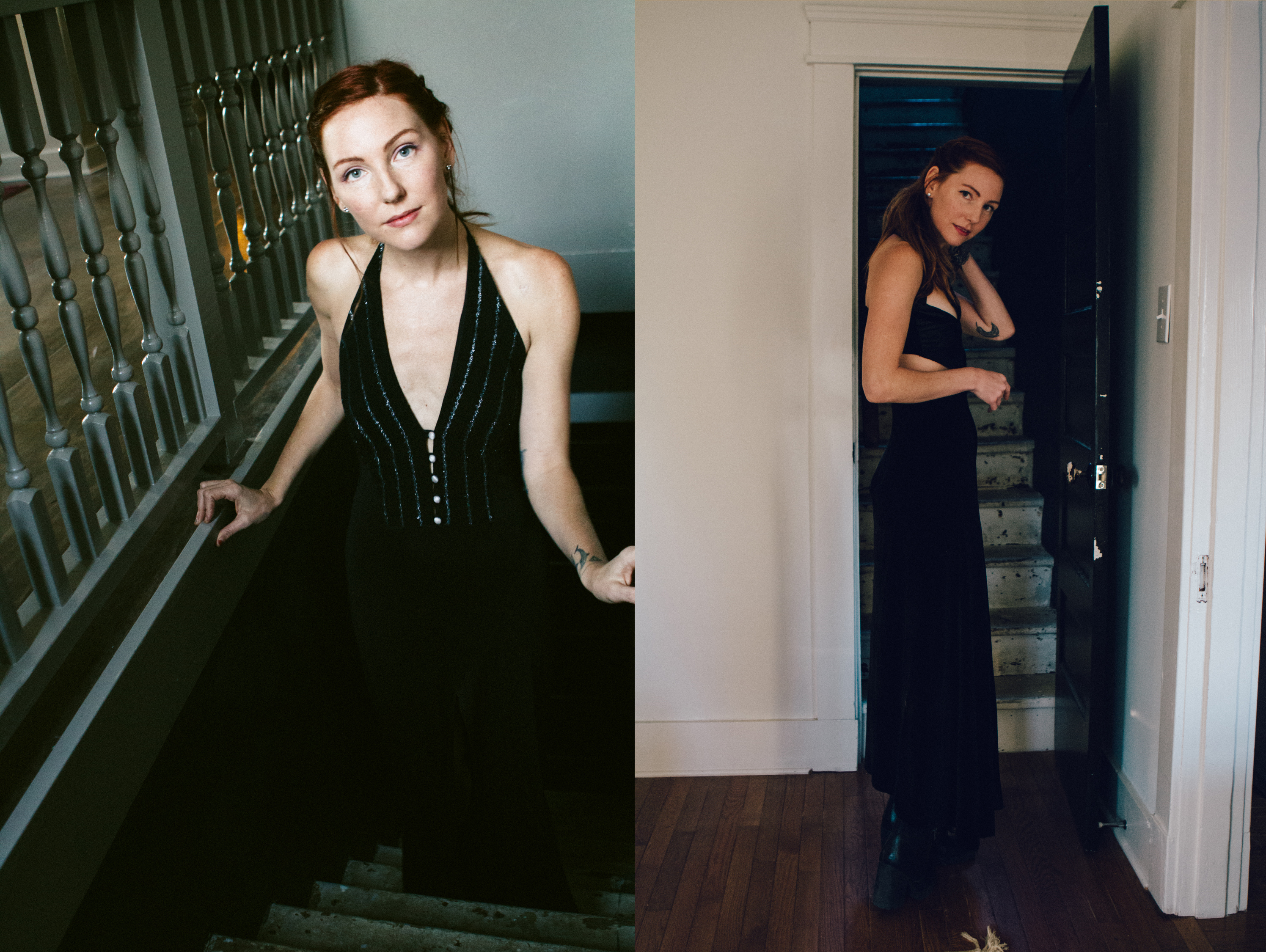 How beautiful does this women look in a velvet floor-length dress? After romping around in denim, shark leotards, and bodysuits, she seamlessly switches on the femme, sexy factor and owns it! Rorey adds a bit of style consistency by pairing her dresses with her staple punk-inspired heeled boots.