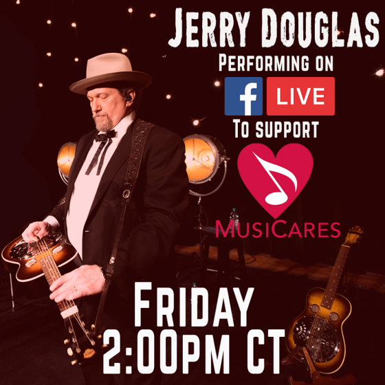 Speaking of MusiCares, the king of the resonator guitar himself, Jerry Douglas, will be going live on his Facebook page tomorrow, March 27, at 2:oopm CDT. So, if you’d like your donation with a side of the tastiest Dobro in the land, here’s your best bet!