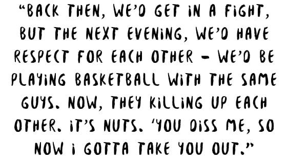 Neville channels New Orleans most especially on “Stompin’ Ground,” when he invokes the places, family, and friends who shaped him. “When I wrote this poem, I started thinking about the people that passed through my life and that meant something to me,” he explains. “Like the first one [he mentions], ‘Mole Face and Melvin.’ I’m Mole Face, that’s me and my friend Melvin. They used to call us that because we used to go through different neighborhoods looking for girls back in the day, and we’d get in fights.” He sees the difference between then and now most starkly in the way young men choose to settle their arguments. “Back then, we’d get in a fight, but the next evening, we’d have respect for each other — we’d be playing basketball with the same guys. Now, they killing up each other. It’s nuts. ‘You diss me, so now I gotta take you out,’ you know.”