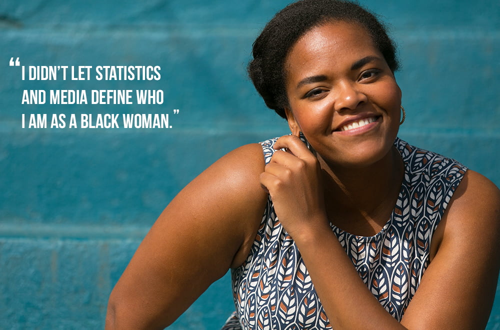 Growing up, I wanted to be an actress, but there weren’t a lot of brown people in movies that I wanted to be in. And I don’t want to portray a slave and I don’t want to portray a teen mom in poverty. Even though I grew up in a single parent home and poor and without a dad, I went to college. I got my Bachelor’s degree. I was an honors student. So I didn’t let statistics and media define who I am as a black woman.
