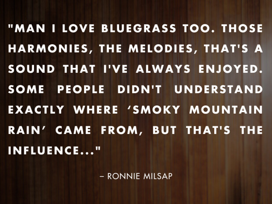 “Man I love bluegrass too,” Milsap said. “Those harmonies, the melodies, that’s a sound that I’ve always enjoyed. Some people didn’t understand exactly where ‘Smoky Mountain Rain’ came from, but that’s the influence. Also gospel is a big influence and of course, I’ve always loved country and soul music. All of it I just absorbed and worked into my own style.”