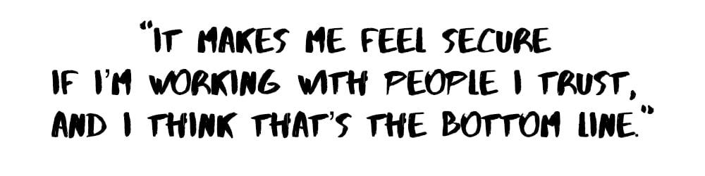 “I feel secure,” she says. “It makes me feel secure if I’m working with people I trust, and I think that’s the bottom line.”