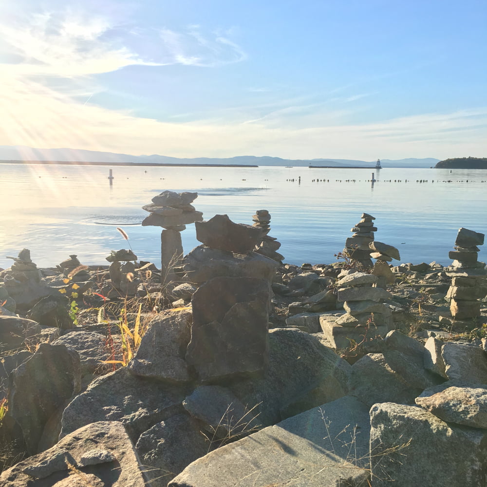 Perhaps Burlington’s crown jewel is the view of Lake Champlain framed by the mountains. Grab a bike from the non-profit rental shop, Local Motion, and hit the many bike paths in town which showcase the natural beauty of Vermont. Waterfront Park is a great place to take a stroll and make a balancing rock formation on the rock beach, alongside many others.