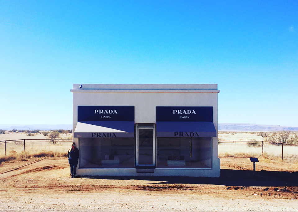 Most shops, restaurants, and galleries are closed on Mondays and Tuesdays, so plan to take it easy or go exploring outside of town those days. There are two grocery stores and two ATMs in town, so consider bringing snacks and cash with you. Thirty minutes outside of town near Valentine, Texas, lies Marfa’s most recognizable marker: Prada Marfa. A permanent art exhibition co-produced by Ballroom Marfa, this Insta-worthy freestanding store is disorienting as you peek through the glass windows to see the fall 2005 Prada collection … in the middle of West Texas.