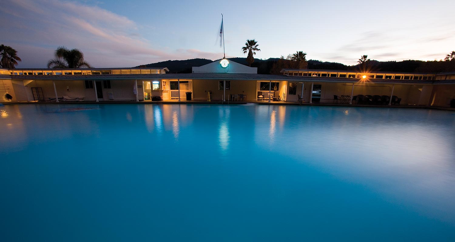 Napa Valley is awash with hotels, B&Bs, and Airbnbs. My favorite place to stay is at Indian Springs in Calistoga in one of the original cottages. This place has recently undergone a big facelift with new buildings added to the old, an “adult” pool added to the original geyser-fed pool built in 1913, new landscaping, and a new restaurant. My whole goal in Napa Valley is to take to the waters. Even a day spent floating in the Olympic-sized pool (temp 92-102 degrees) has the effect of a vacation. My preferred weekend involves two nights and a full day at Indian Springs. Sleeping in, a big pile of catch-up magazines and a good book, a good hat and naps on the lounge chair when I am not floating, and getting a spa treatment (volcanic ash mud bath) or two in the spa. I just love this place.