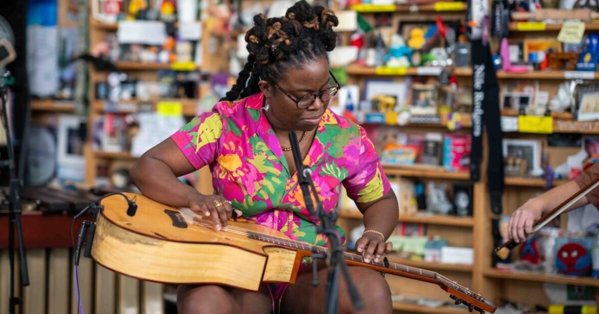 With joy, gratitude, and undeniable talent, composer and innovative guitarist Yasmin Williams shines in her first official NPR Tiny Desk Concert – and we can’t stop watching! Flanked by a crew of seven musical collaborators – including old-time music powerhouses Tatiana Hargreaves and Allison de Groot – Williams shares four original songs, “Hummingbird,” “Sisters,” “Guitka,” and “Restless Heart.” While the 23-minute performance is firmly rooted in Williams’ characteristic style, her songs transcend easy genre labels, inhabiting a musical atmosphere of their own. What results is a collection of thoughtful, intricate, and heart-led songs that bring the listener firmly and gently into the present moment.