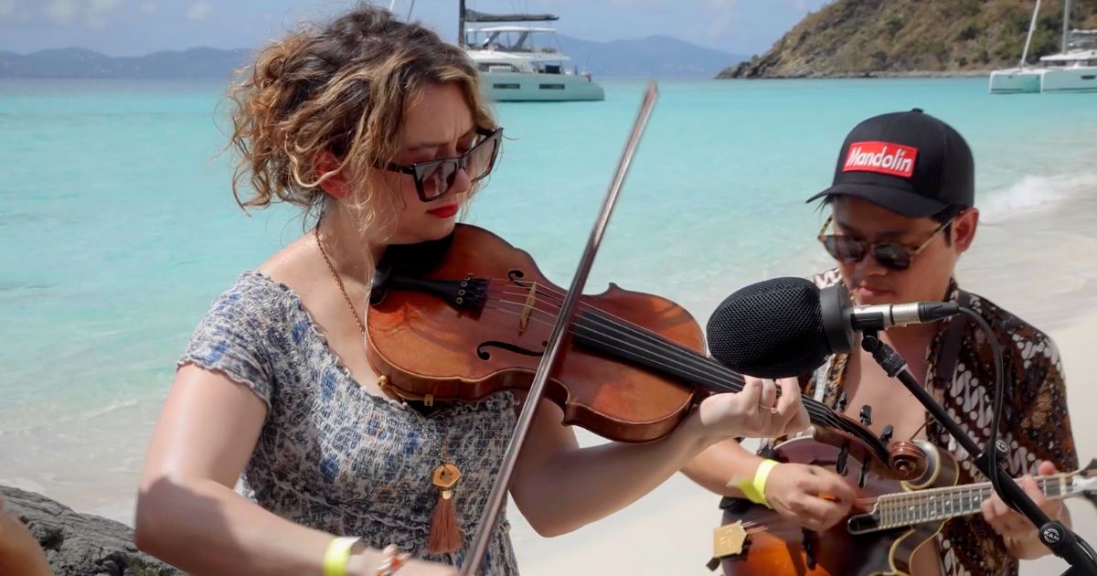 This year’s Cayamo cruise made a stop in the British Virgin Islands, and caught Twisted Pine rolling through “Come Along Jody” on the shores of Jost Van Dyke’s White Bay. Says the group of the song, “We wanted to feature Anh Phung on a ripping bluegrass tune, and this is a particularly gnarly one that we’ve always loved. It comes from the amazing bluegrass fiddler Tex Logan who wrote it for his daughter Jody.” Twisted Pine is Kathleen Parks on fiddle, Dan Bui on mandolin, Anh Phung on flute, and Chris Sartori on bass.