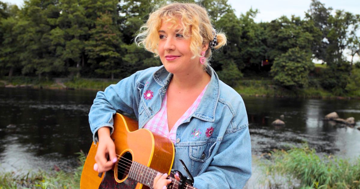 Her first number, “Karaoke,” is warm and charming in this solo context, accompanied solely by her well-loved and broken-in Gibson acoustic guitar. The original song is pulled from Blank’s 2022 EP, Saddies, where the production is something of a broken dreamscape dressed in acoustic alt-pop and lush, layered vocals. The song still shines in this stripped down, solo setting – especially with the beautiful Falkenberg riverside as a background.