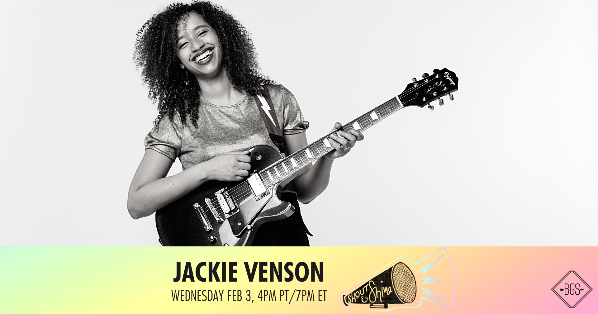 BGS is proud to announce Shout & Shine Episode 4! Austin, Texas songwriter and guitar-slinger Jackie Venson is our guest for this livestream iteration of Shout & Shine, which comprises short-form, intimate video performances by underrepresented and marginalized artists in Americana, folk, and bluegrass.